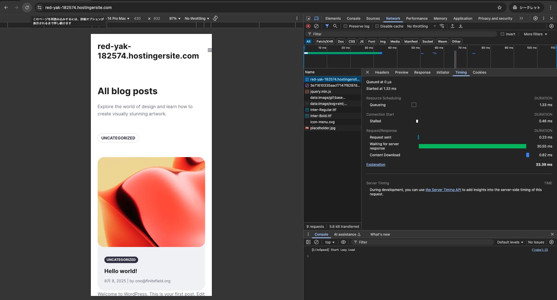 があります。こちらは、弊社計測No.1のサーバー速度が【Hostinger】
